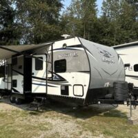 The 2017 Jayco Octane travel trailer is available for auction and offers a solid base with some notable issues. The right side body panel is bulging out, and there are creases on both the right and left sides, indicating potential structural concerns. The kitchen appliances, bathroom fixtures, and essential systems like air conditioning and heating are operational. Please review the photos for damages.