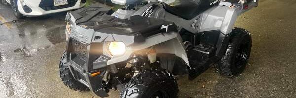 The Polaris Sportsman 570 is in very good condition with a mileage of 1,334 km. The suspension, frame, and all electrical components are in good working order.