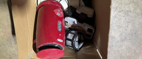 Assorted Items: Includes electric heater, fan, lights, and mosquito trap. See pictures for condition and details.