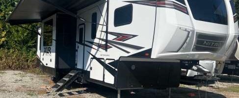 This 2021 Forest River 35DK5 Toy Hauler is towable and equipped with working appliances, AC, heat, and generator. However, it does need attention: scratches on exterior panels, flooring ripped at slide area which makes it difficult to open and close the slide however it it was opened and closed ,loose moldings, and moisture damage behind the stove. Interior requires structural repairs but offers strong potential