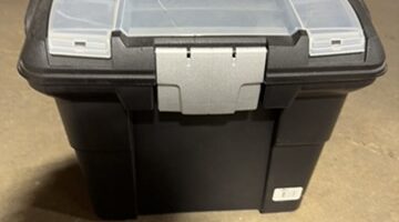Black Storage Box: Durable storage solution for various items. Condition and specifications as shown in pictures.